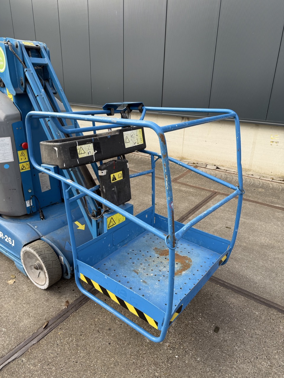 De Genie GR 26-J is een mast hoogweker met een telescopische cilinder in de mast.