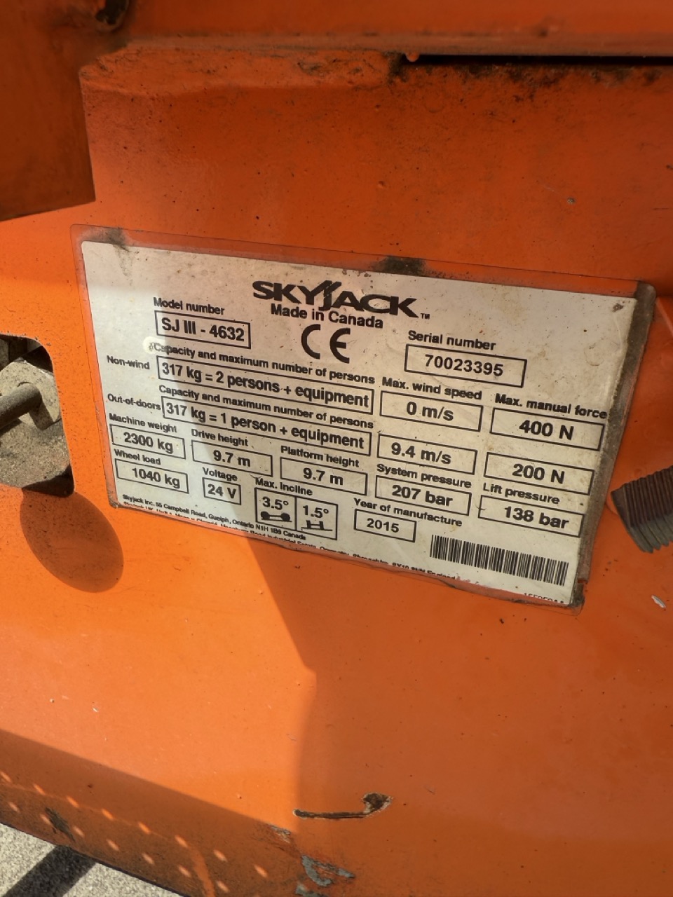 De skyjack sj 4632 heeft een werkhoogte van 11,7m
